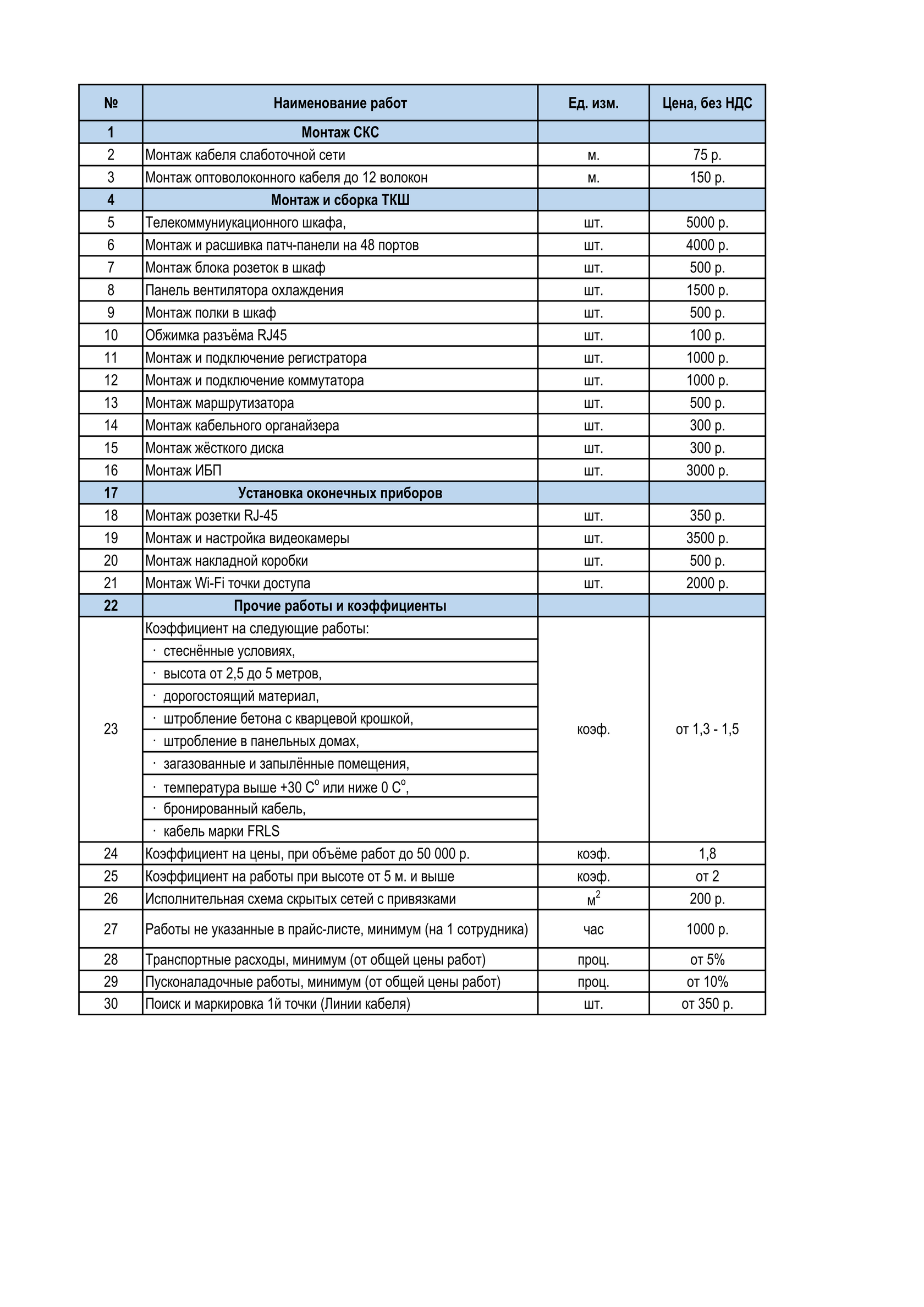 Гарантия дается на все виды работ, сроки гарантии монтажа зависят от паспортных данных самого изделия, например кабель марки КГ имеет гарантию всего 6 месяцев, но при правильной прокладке служит более 15 лет.